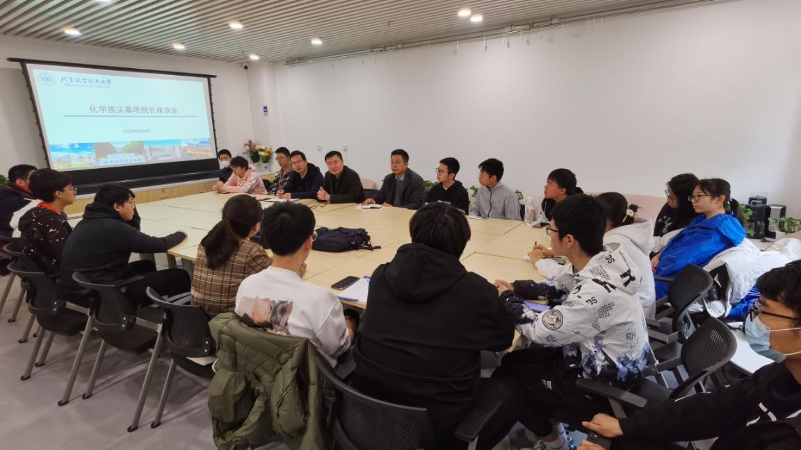 3月21日上午,pp电子游戏官网于沙河校区举办“化学拔尖学生座谈会”,围绕学业发展、校园生活和未来规划等一系列话题进行交流。pp电子游戏官网院长刘明杰、副院长田东亮、党委副书记张绍丽、小班辅导员吴宇凡及小班全体同学参会。