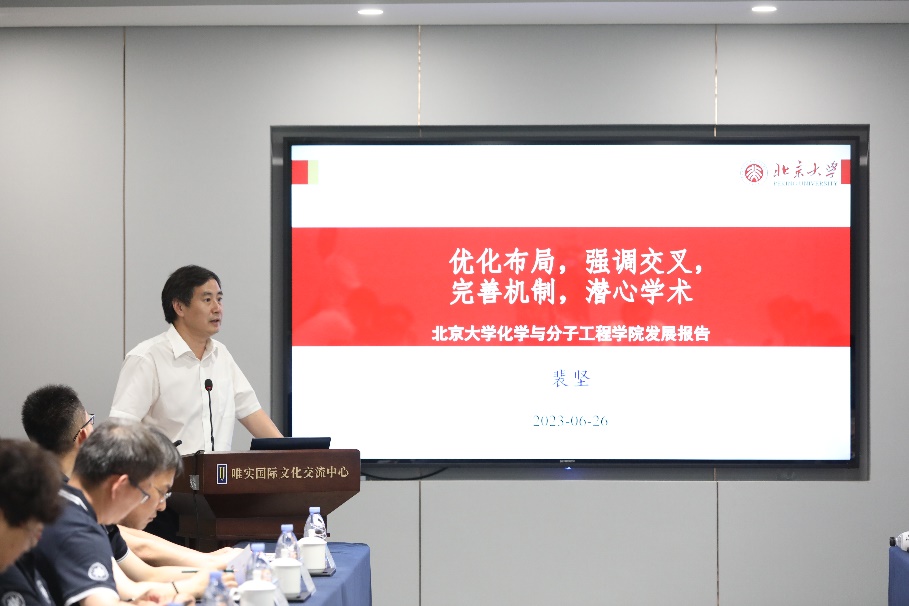 首先,北京大学化学与分子工程学院党委书记、国家教学名师裴坚教授进行“优化布局强调交叉完善机制潜心学术”主题报告。裴坚教授首先对北航pp电子游戏官网十五周年表示祝贺。秉持“核心下沉,两翼张开,布局AI化学、新化工”发展理念,北京大学化学与分子工程学院对人才制度不断进行创新改革,坚持基础学科贯通式人才培养目标,营造浓厚学术氛围,增强产学结合。