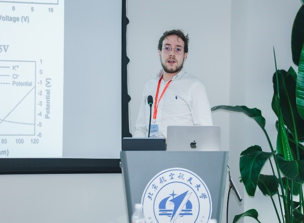 Soufiane Abdelghani-idrissi 副教授介绍了其在离子二极管及其衍生物的基本原理和应用方面的研究进展。北航pp电子游戏官网衡利苹教授介绍了仿生超浸润界面上的电致驱动微流体,通过设计一种超透明的光热释电超润滑的平台,可实现高粘液体的精准分离,展示了其在液体分离领域的巨大应用潜力。
