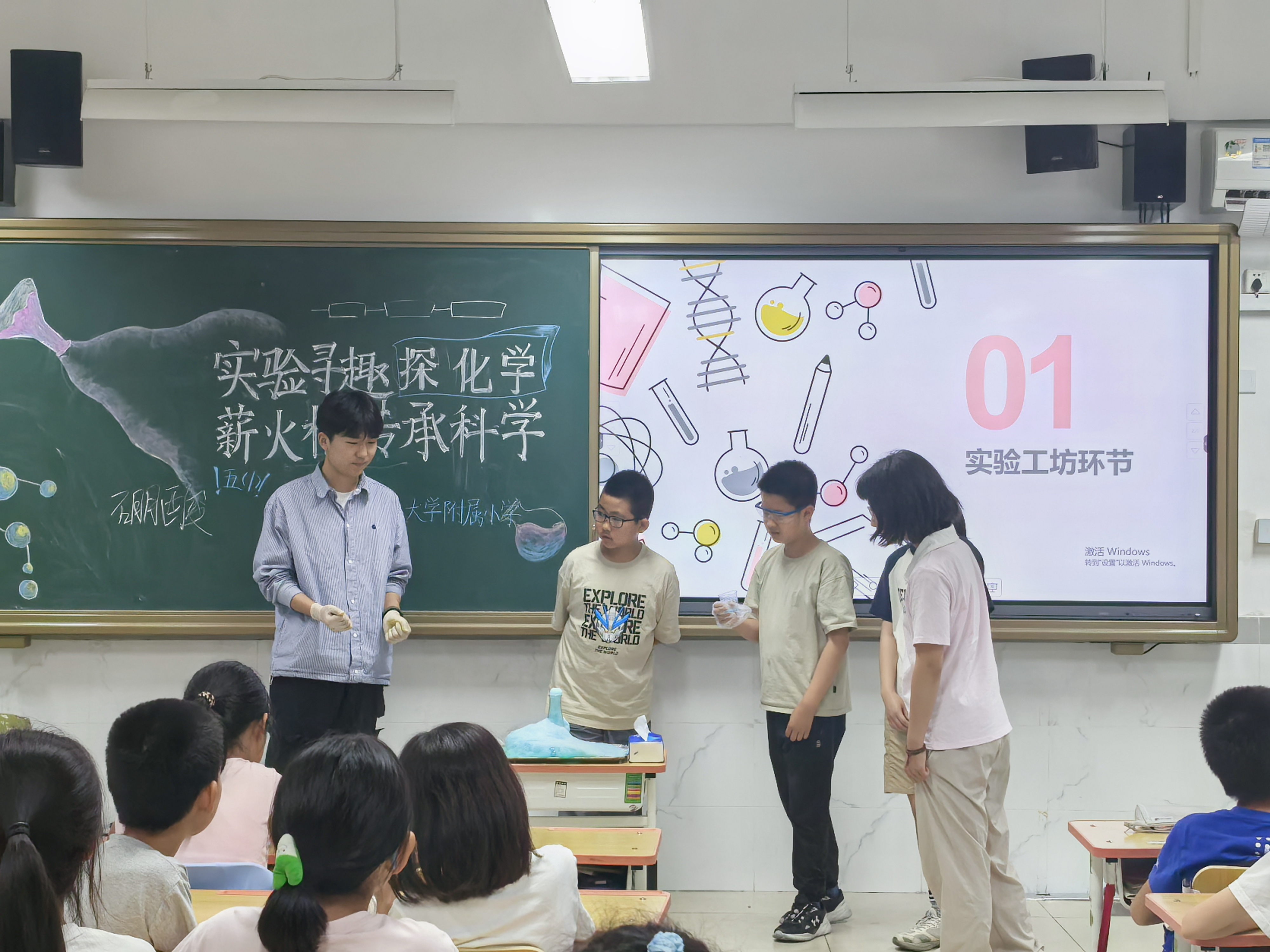 5月28日下午,pp电子游戏官网关工委在实验学校小学部五年级1班,开展了以“老少携手点燃科学梦想”为主题的化学科普进小学活动。离退休工作处、pp电子游戏官网离退休支部、学生支部参与活动。