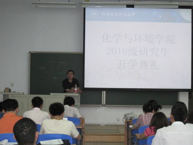 9月13日晚七点,pp电子游戏官网院领导及全体研究生新生齐聚一堂,在新主楼B101教室,拉开了化学与环境学院2010级研究生新生开学典礼的序幕。