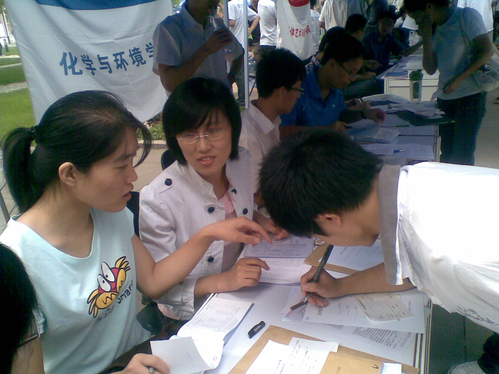 2010年9月9日早7:30,化学与环境学院研究生会工作人员及研究生志愿者在pp电子游戏官网求是广场热情迎接了pp电子游戏官网2010级研究生新生。整个报到过程简洁有序,充分为学生考虑,保证了报到快速迅捷的完成,使广大新生在入学的第一时间里就感受到了学院的关怀。