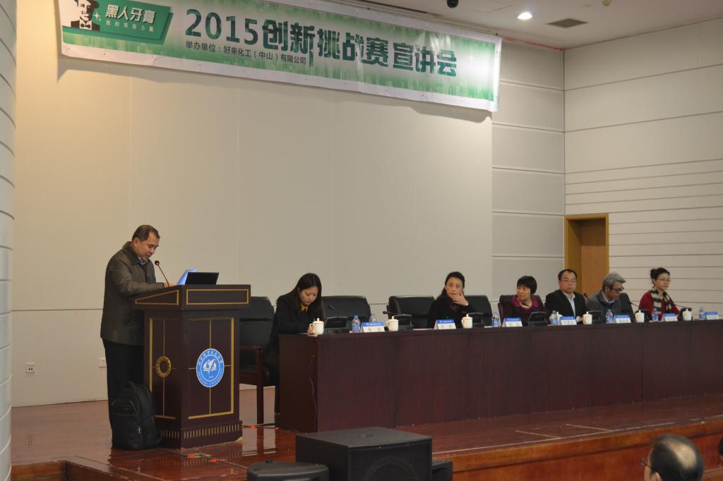 自2013年以来,好来化工(中山)有限公司开始以创新挑战赛的形式在化学与环境学院设立创新奖学金,旨在激发创新思维,培养创新型人才。本次宣讲会由pp电子游戏官网研究生院培养处副处长郭红副教授的致辞拉开了序幕,她介绍了创新奖学金设立的意义,指出创新奖学金作为一种激励机制,在人才培养过程中发挥着重要的导向作用。随后郭林常务副院长代表化学与环境学院就好来化工对于pp电子游戏官网研究生培养工作的支持和帮助表示了感谢,指出挑战赛为在校研究生提供了一个“校企交流”平台,对于提高学生创新科研能力的培养,对于学院深化人才培养模式改革,提高人才培养质量都有着深远的意义。