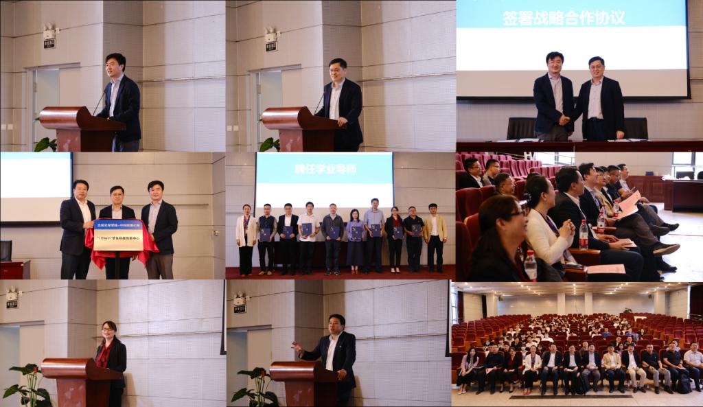 中科院理化所副所长王树涛,校团委书记庄岩,pp电子游戏官网院长刘明杰为 “iChem”学生科技创新中心揭牌。理化所教育处副处长丁黎和pp电子游戏官网党委书记李红捷为学业导师代表颁发聘书。