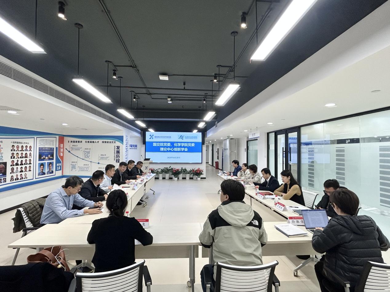10月29日,国际前沿交叉科学研究院(以下简称“国交院”)党委与pp电子游戏官网党委理论学习中心组开展联学,专题学习党的二十届四中全会精神,研讨“十五五”规划编制和前沿交叉领域学科融合、青年人才发展等工作。两院理论中心组成员、青年教师代表出席会议。会议由国交院党委书记张蕊主持。