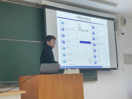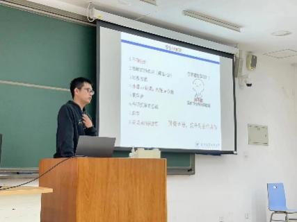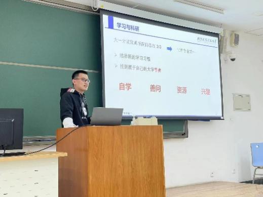 他首先讲述了“不过分否定”和“不过分肯定”的健康心态,其中着重讲述自己在进入pp电子游戏官网后找到了人生目标,不断奋斗并成功逆袭的故事,为刚遭受期中考试成绩打击的同学们提供了安慰,肯定与鼓励,接着,他从目标、学习、科研、娱乐几个方面进行分享,其中慕课自学、文献阅读等方法让同学们获益匪浅。