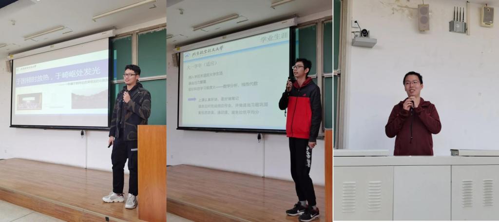 作为北航大学生科协项目部部长,pp电子游戏官网学生会主席,高家楠同学以别具一格的开场吸引了所有人的注意。虽然拥有着GPA3.73和综合排名4/30的好成绩,但他在大一时却并不出众,在迷茫中他曾努力找寻着方向:分清优劣学科、自主完成作业、参加多项活动并取得名次,以及当学弟学妹们的答疑员完善自己的不足。凭借着筚路蓝缕式的努力,他一步步走到了今天,拿到了中科院理化所保研的资格。也正是这种“敢于闯出一片天”的精神,让在场的我们获益匪浅。他告诉我们四句话:要学会找到志同道合的朋友;深化内容以克服虚无;尽早做出决断及时止损;成为一个自己远比好学生重要。