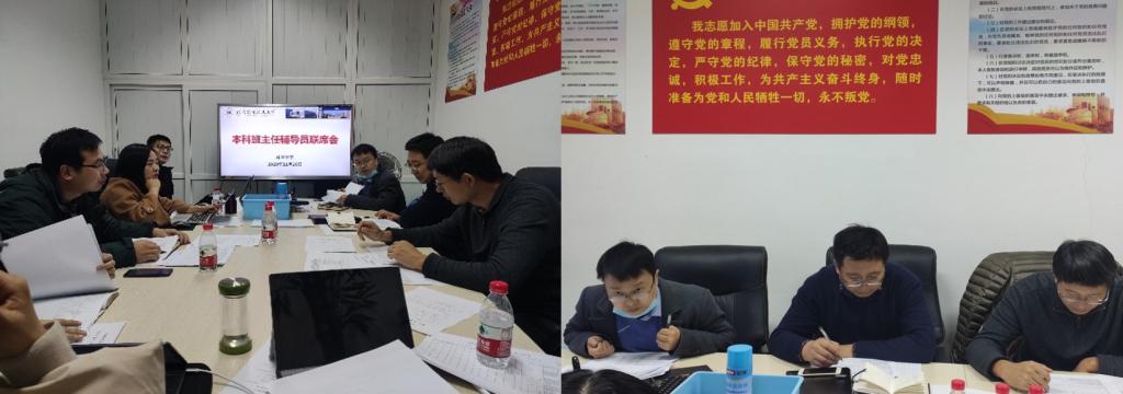 11月26日下午,pp电子游戏官网在新主楼D-121召开本科班主任、辅导员联席会。本科教学副院长田东亮老师,党委副书记张绍丽老师,本科19级班主任赵勇老师、王华老师,分团委书记魏茜及17、18、19、20级辅导员参加了本次会议。会议由党委副书记张绍丽主持。