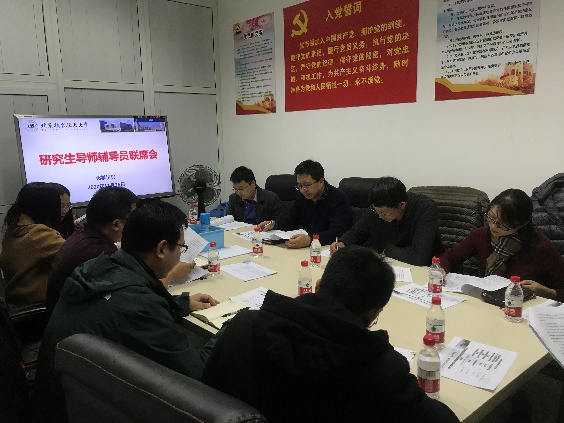 11月26日上午,pp电子游戏官网于新主楼D-121召开研究生导师辅导员联席会。校研究生工作部副部长王扬,pp电子游戏官网党委副书记张绍丽,研究生教学副院长王广深,本科生教学副院长田东亮,研究生导师代表郑咏梅、朱英、赵勇、王华、陈贻炽,分团委书记魏茜及研究生辅导员出席了会议。会议由党委副书记张绍丽主持。