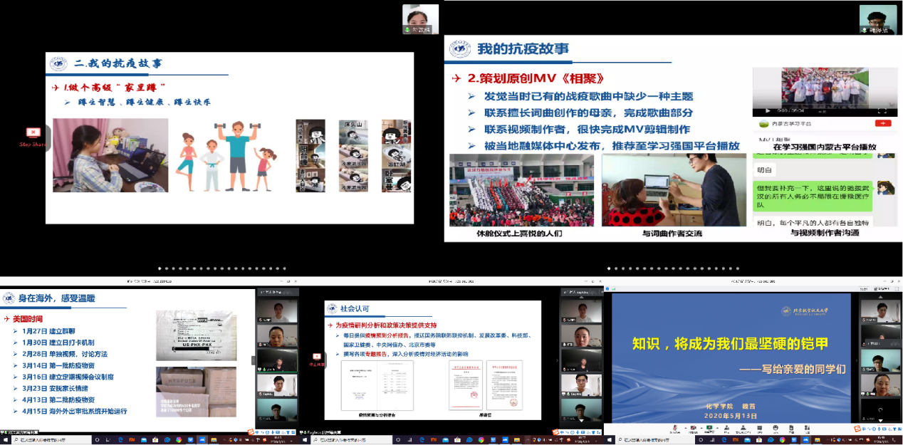 首先,在居家学习的这段日子里,我们面对着来源广泛、五花八门的疫情相关信息,要依靠自己的科学知识和理性思考冷静客观地进行辨识,做好自我防护。其次,我们可以宣传防疫知识,用自己的专业知识引导与服务他人,就像pp电子游戏官网举办的新冠疫情防控创新大赛中涌现出许多优秀的科普宣传、科研创新作品一样,我们要让自己丰富的想法转化为行动。再次,知识还是我们应对谣言与攻击的有力武器,让我们能够形成有理有据的观点来应对质疑。最后,魏老师号召我们全体同学要在做好健康防护的同时继续保持认真学习的状态,打牢专业基础,也可以利用这段时间认真思考自己的发展方向,做好未来规划。当我们回到洒满阳光的北航,将身披着更厚实的知识铠甲坚毅前行。