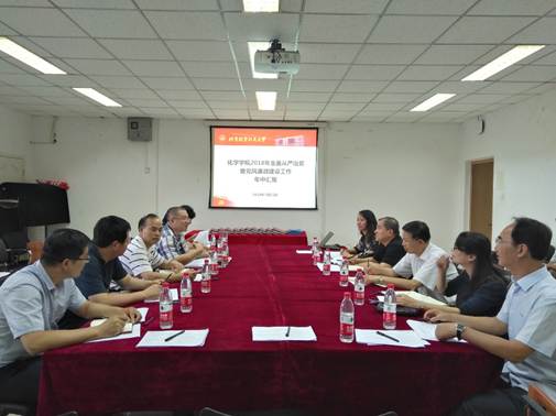 7月11日下午,由纪委书记何新洲,纪委副书记、纪委办公室主任、监察处处长武立勋,纪检员方滨艳,纪检员何述义,党风廉政监督员王健和谭立组成的检查组对pp电子游戏官网全面从严治党暨党风廉政建设工作进行了检查。pp电子游戏官网党委书记李红捷,常务副院长郭林,本科教学副院长朱英,化学系主任高秋明,党委委员杨青林及学院教工党支部书记、青年教师代表等参加了汇报会。