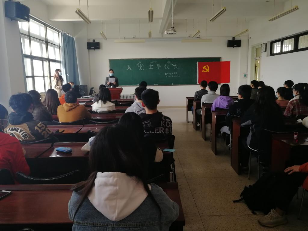 本站讯 3月31日,英国上市365官网于图东环楼304报告厅举行入党宣誓仪式暨毕业生党员主题教育动员大会。学院党委书记于振涛、党委副书记王鹏飞出席会议,全体毕业生党员参加会议。会议由辅导员王祎璠主持。